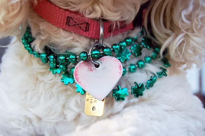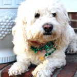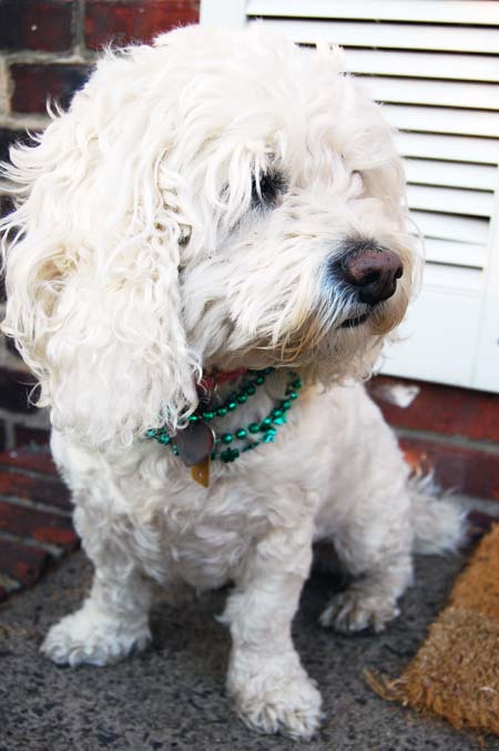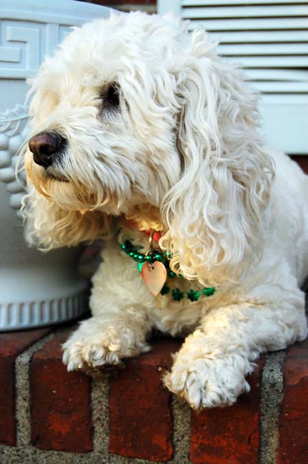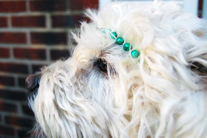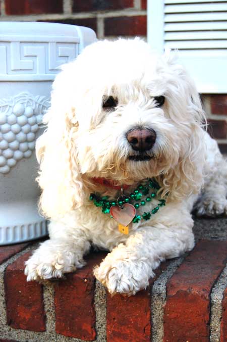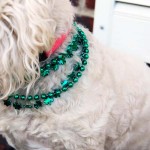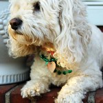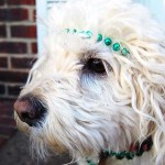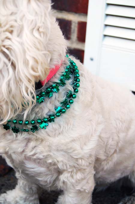 Today, I took Princess for her regular Tuesday visit to the local nursing home and dressed her up with some pretty green necklaces. Everyone noticed and she got lots of love like usual. She loves sharing the holidays with the people. Here are some photos showing herself off.