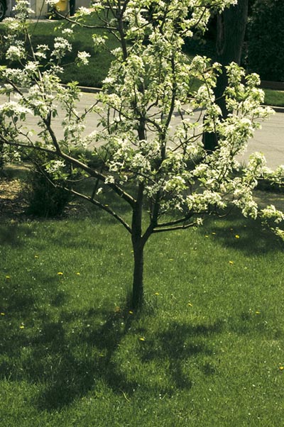 The photo is a pear tree at our house. Blooming beautiful flowers and now their are pears all over it. We do not use pesticides so that means bees come around and pollinate the tree. When the pears get bigger the squirrels steal them from us. Those darn squirrels are always so hungry.