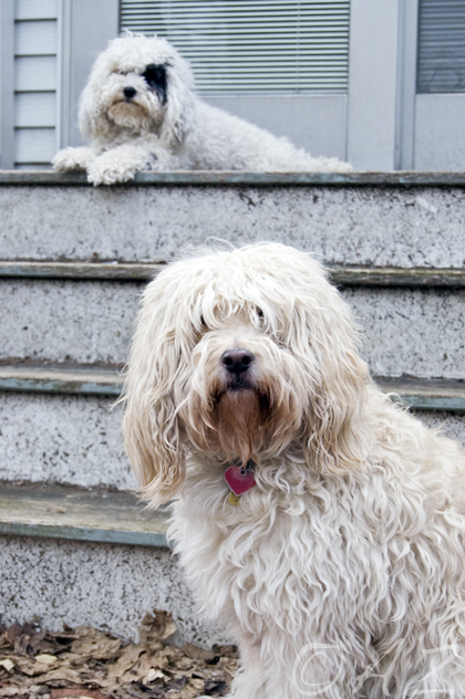 Lady and Oliver ready to go inside
