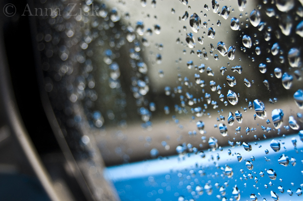 Quick rain shower in the morning left rain drops on my jeep’s mirror.